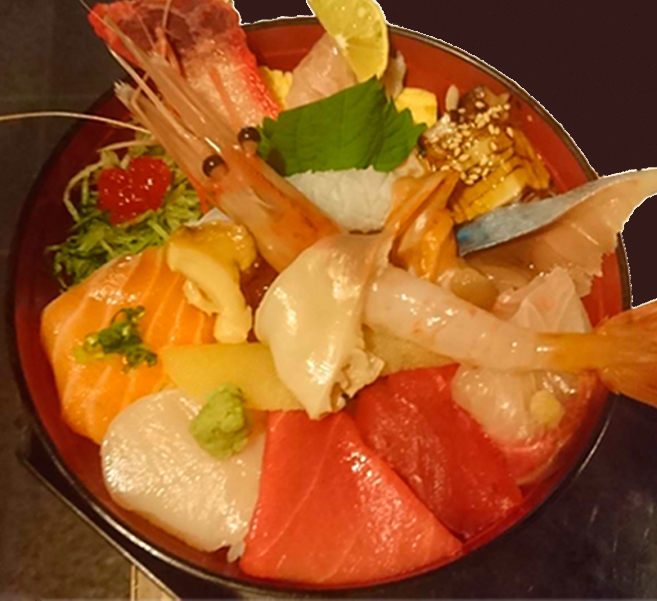 浜寿しおすすめの旬のネタが乗った海鮮丼です。